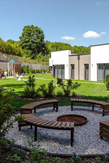 Ławki ustawione wokół paleniska tworzą doskonałe warunki do relaksu i rozmów